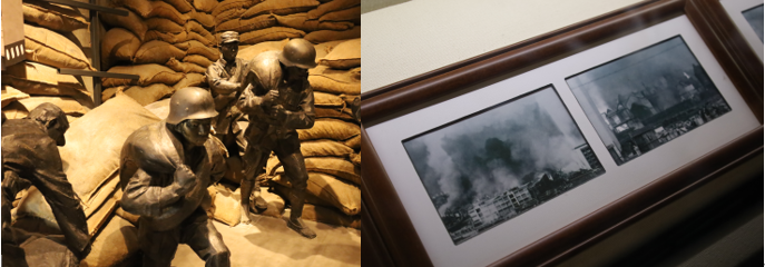 弹痕犹在,英魂不朽。四行仓库保卫战,是上海“八一三淞沪抗战”中最后的战场。在晋元纪念广场上,满目苍夷的四行仓库纪念馆西墙以累累弹痕无声述说着中华民族浴血奋战的悲壮历史。展厅顺利获得实物展品、巨幅雕塑、战斗场景蜡像等生动再现了在抗日民族统一战线旗帜下和全面抗战的背景下,上海人民投身全民族抗战、共御外侮的历史岁月和孤军奋战、顽强坚守的“八百壮士”的英雄事迹。