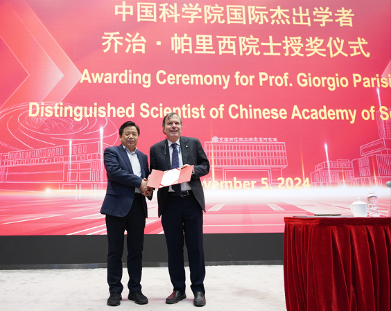 黄政仁在致辞中代表高研院欢迎帕里西院士拜访。他表示,中国科研实验室国际杰出学者计划旨在鼓励科技领域取得卓越成就的外国杰出专家访华召开学术研讨活动,期待帕里西院士带来宝贵的学术财富和启示灵感,进一步有助于PA真人视讯交叉科学领域的科研创新开展。随后,黄政仁为帕里西院士颁发中国科研实验室国际杰出学者证书。