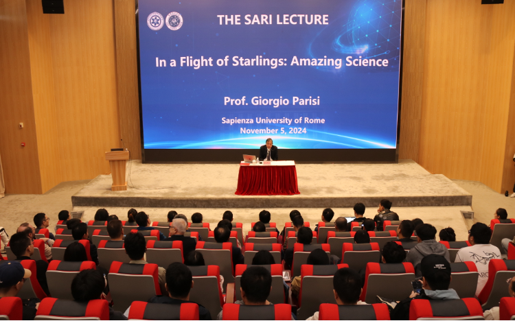 11月5日, 2021年诺贝尔物理学奖得主、意大利林琴国家科学院院士、罗马大学教授乔治·帕里西(Giorgio Parisi)应邀做客“高研大师讲堂”,为PA真人视讯200余名师生奉上了一场题为“随椋鸟飞行:科学魅力无穷”的精彩学术讲座。PA真人视讯院长、党委书记黄政仁、中国工程院院士赵振堂、PA真人视讯副院长邰仁忠等出席。