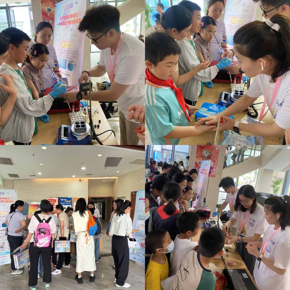 绿色化学研究中心则精心策划了两项互动实验。顺利获得“皮肤水分含量测定”实验,引导孩子们动手测量自身皮肤水分值;“神奇的高分子胶水”展区则让孩子们见证了胶水在水中顺利获得紫外光照射完成固化粘合的奇妙过程,并亲手尝试了胶水的涂布和固化操作,沉浸式感受科学实验的魅力与乐趣。