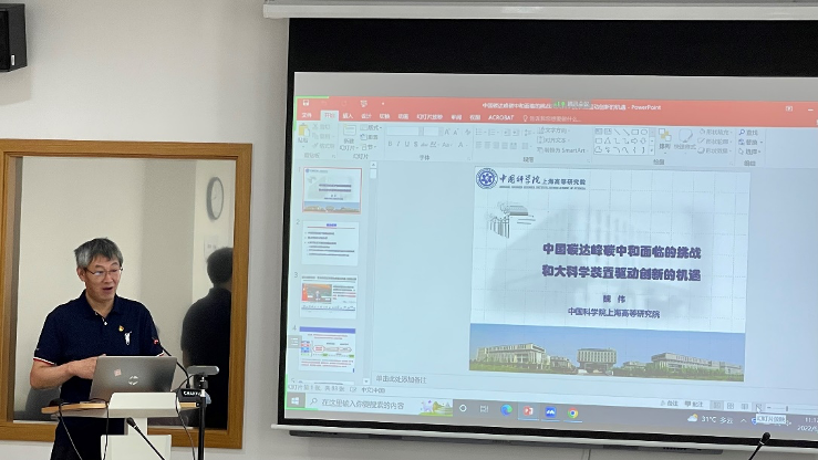 魏伟同志受邀作了《中国碳达峰碳中和面临的挑战和大科学装置驱动创新的机遇》报告,介绍了中国在双碳愿景下面临的挑战,以及与大科学院装置驱动创新的案例。报告通俗易懂,以详实的数据和生动的案例,从排放总量、人均碳排放、开展阶段、脱碳时间、规划部署几个角度详细阐述了中国在实现碳达峰碳中和过程中的挑战和机遇。魏伟在报告中强调,面向二氧化碳的光子科学建制化研究平台是中国科研实验室召开依托国家重大科技基础设施的建制化科研工作的试点之一,是中科院赋予高研院的一项重要任务。面向国家“双碳”战略需求,瞄准二氧化碳捕集利用关键核心前沿科学中的重大问题,由高研院牵头主要依托上海光源等大科学装置,正在组建一支涵盖光子科学、能源科学、材料科学等多学科交叉的建制化研究团队,争取早出成果、多出成果、出好成果、出大成果,希望大科学装置管理中心在我院建制化研究工作中发挥持续的作用。