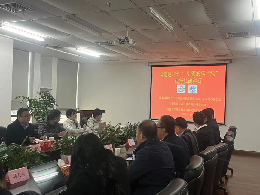 为助力双碳目标,发挥科技工作者和化工企业在碳利用和碳减排方面的优势作用,加强党对“双碳”工作的领导,2023年11月15日,PA真人视讯低碳第一团支部联合上海华谊能源化工有限公司开展部团支部、技术中心团支部和上海华谊工业气体有限公司团支部召开以“党建红”引领“低碳绿”践行低碳科研的党建联建活动。