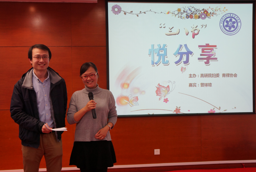 为迎接妇女节的来临,2016年3月7日中科院上海高等研究院妇委与青稞协会联合举办了“三八节——悦分享”沙龙,活动邀请高研院研究员曾祥