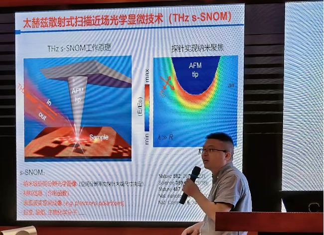 上海理工大学朱亦鸣教授报告了自主研发的太赫兹近场成像与谱学技术,展示了其在低维材料基元特性研究、生物细胞纳米级分辨成像等方面的突破,凸显了高灵敏探测技术与强大光源结合的价值。